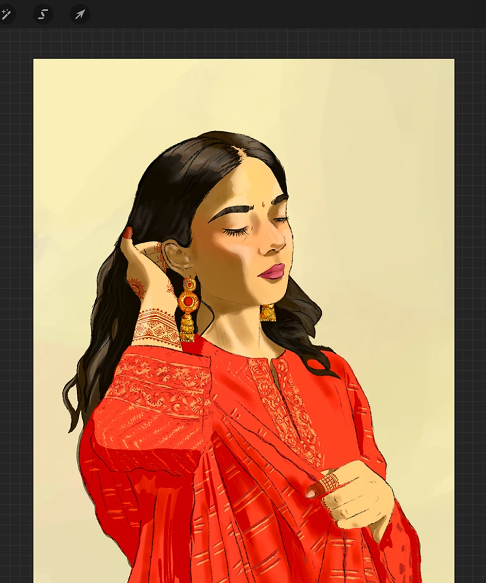 This illustration project beautifully captures the interplay of light and shadow as it dances across a girl adorned in exquisite ethnic wear. Each step of the process is meticulously portrayed, showcasing the evolution of elegance from sketch to the final masterpiece. Through delicate details and masterful shading, the artwork not only celebrates traditional attire but also explores the poetic relationship between illumination and silhouette, bringing the subject to life with a captivating blend of grace and artistry.